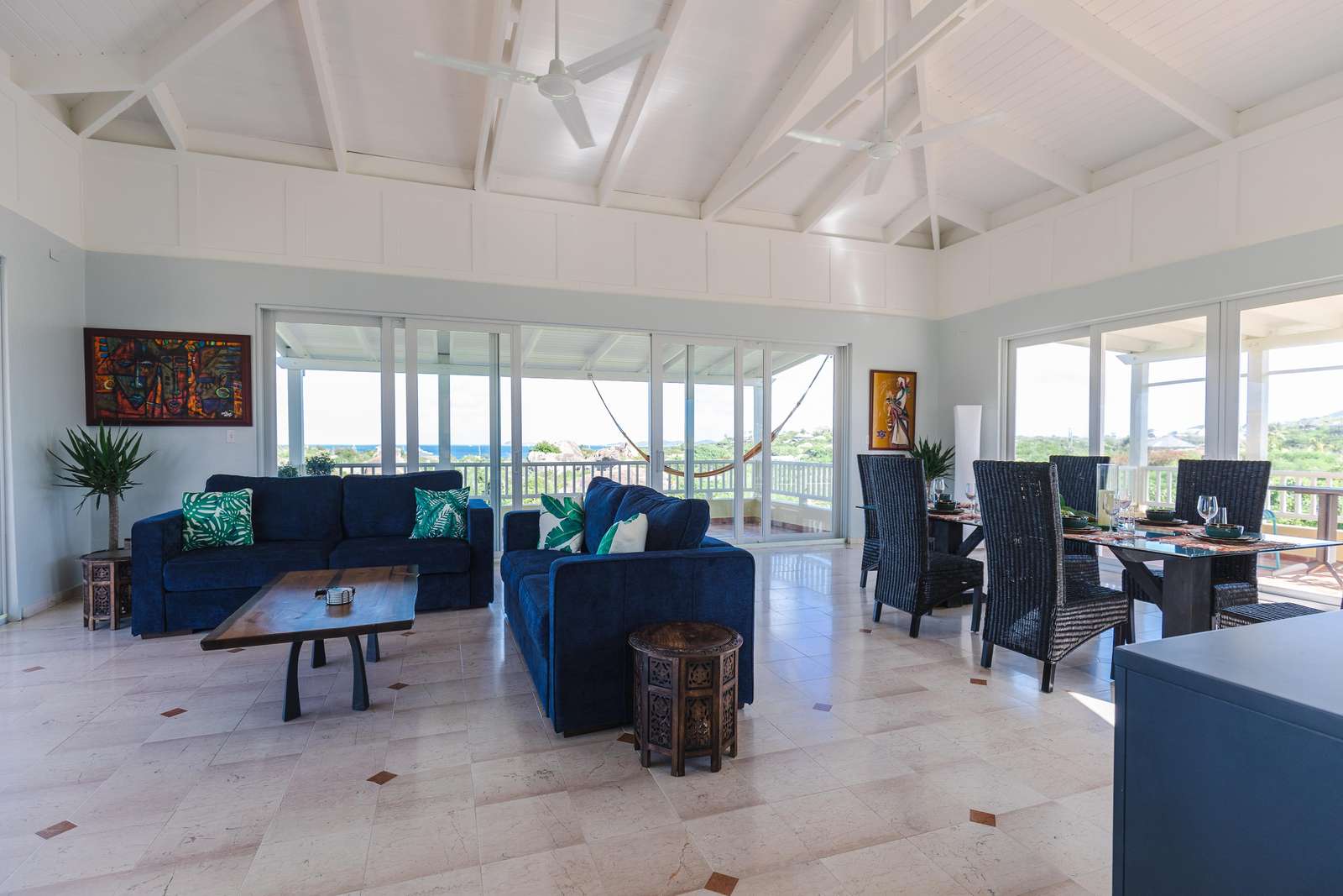 Bigger Splash Villa consists of the Main House and an attached Cottage, providing ample space and privacy for up to 10 guests. Thoughtfully designed indoor and outdoor spaces offer multiple settings for relaxation, dining, and entertainment, all against a backdrop of stunning island vistas.