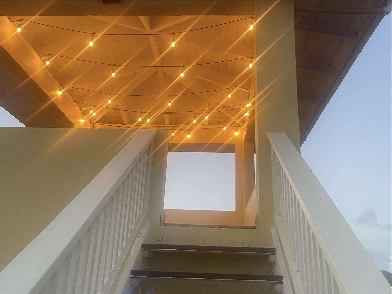 Accommodating 6–8 guests, the Main House features two distinct levels and a charming lookout tower offering panoramic views of the island. Its open-concept design includes a great room, dining area, and a fully equipped kitchen (non air-conditioned). The space is bathed in natural light through large windows and wide doors, which invite in the refreshing island breeze. Wraparound balconies provide seating areas, a hammock, and a tranquil setting for stargazing or enjoying cool evening breezes.