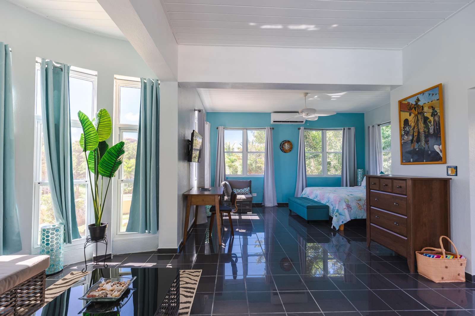 - One air-conditioned bedroom with a queen bed