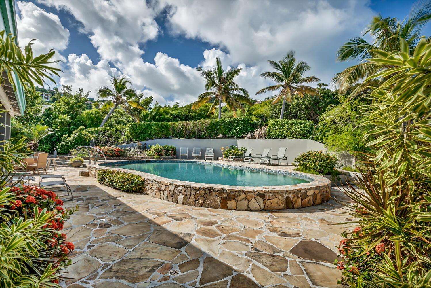 Coconut Grove is a stunning 5-bedroom, 5.5-bathroom villa nestled on a peaceful hillside in Leverick Bay, Virgin Gorda. This enchanting retreat, surrounded by lush tropical gardens and adorned with a beautiful purpleheart wood and iron decorative gate, is the perfect destination for family reunions, weddings, or gatherings with friends.
