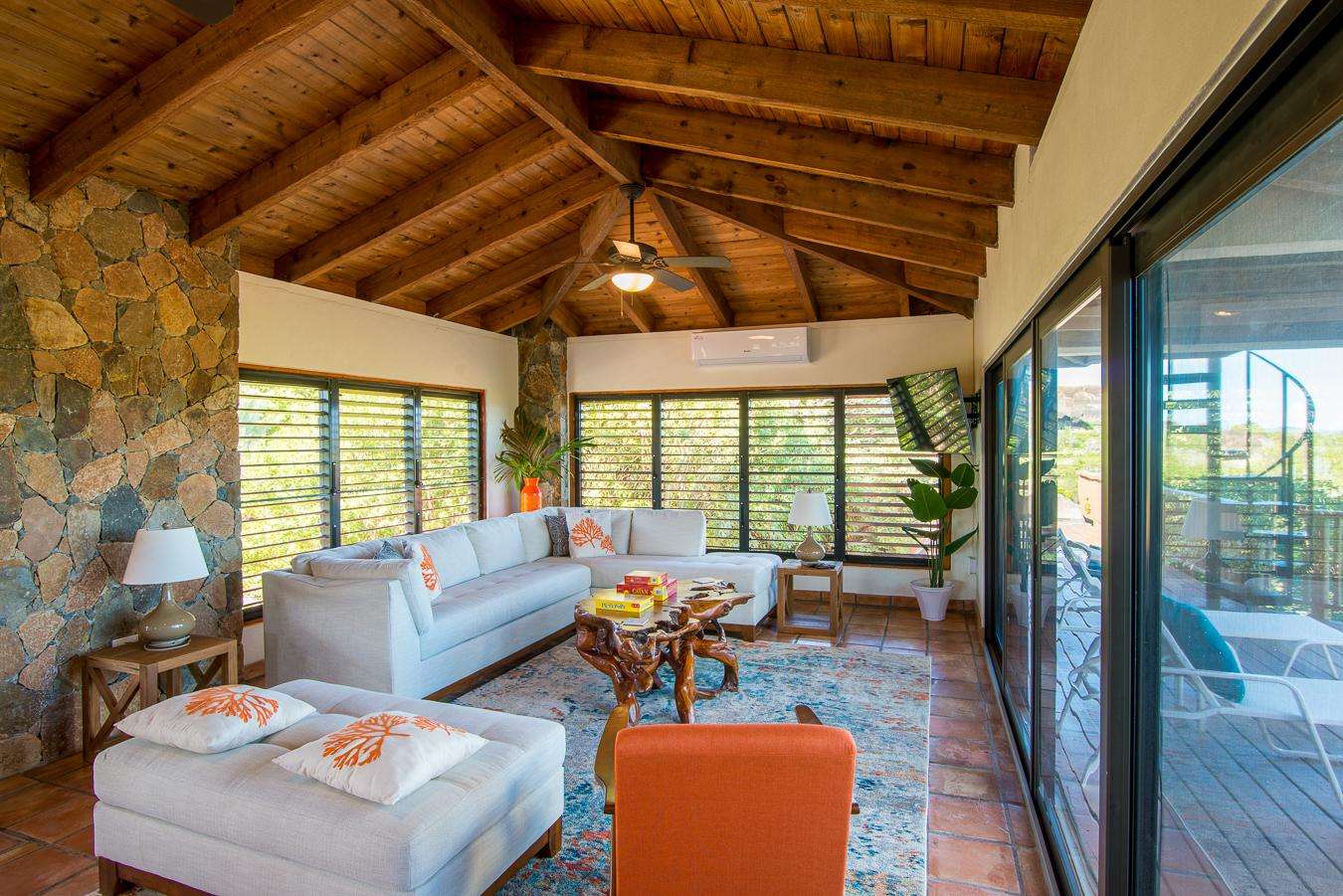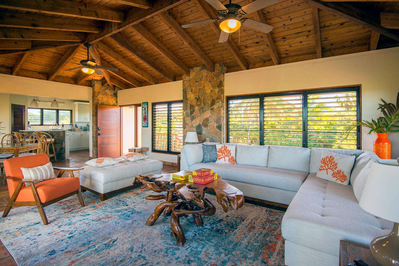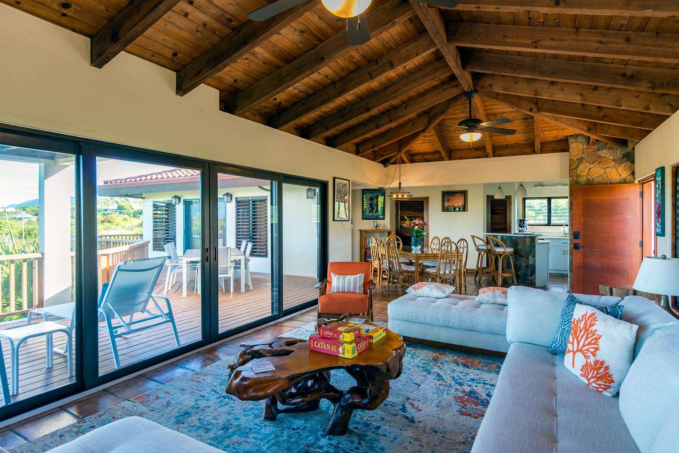 Sliding glass doors open onto the spacious upper deck, inviting natural light and ocean breezes.