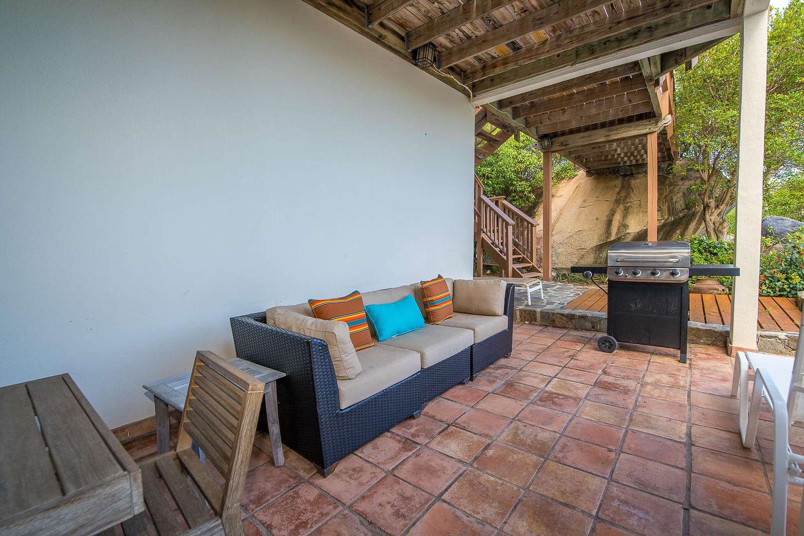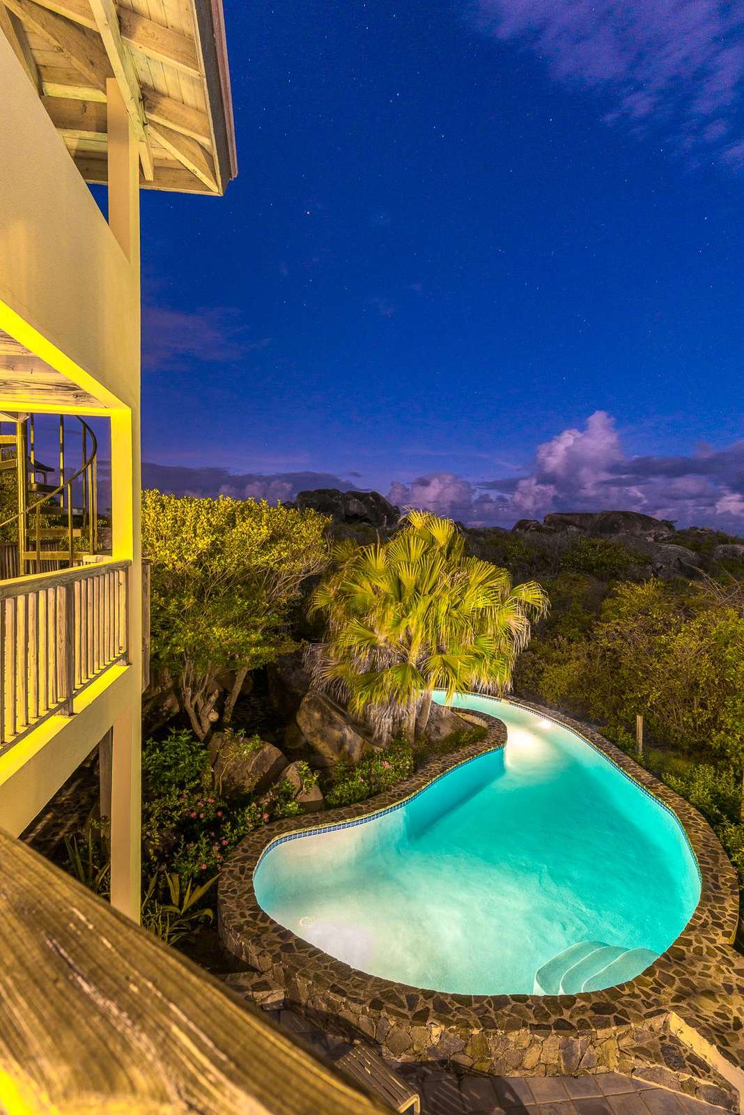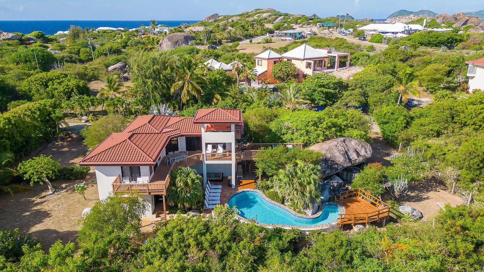 Set amidst peaceful landscaped gardens, this eclectic two-story villa offers a tranquil retreat complete with stunning views, spacious outdoor areas, and a private freeform swimming pool nestled among Virgin Gorda’s signature granite boulders. Post-Hurricane Irma renovations have infused this home with thoughtful upgrades, including a new roof, windows, and doors, while retaining its classic natural stone and masonry charm.